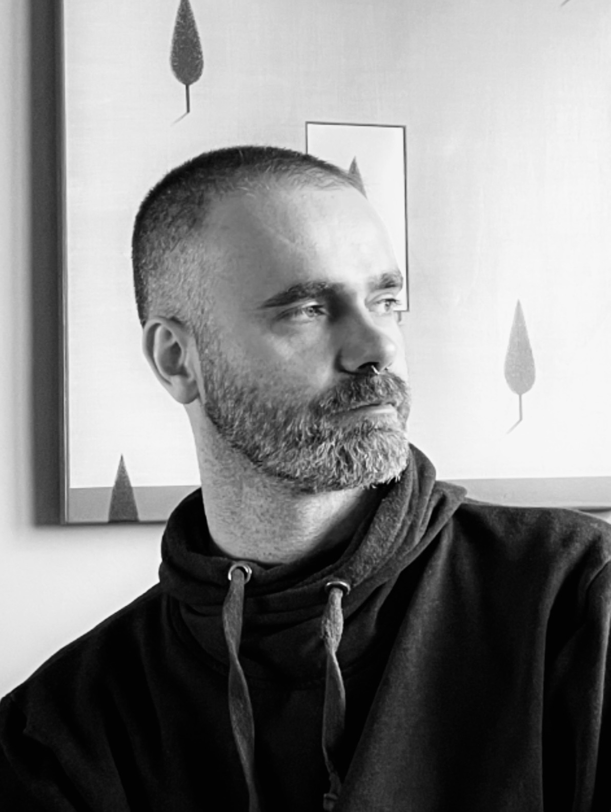 Nikola Sarić (b. 1985, Bajina Bašta, Serbia) is a German-based artist living and working in Hannover. Trained at the Academy of Applied Arts in Belgrade, he developed an early interest in Byzantine and early Christian art, later refining his knowledge of fresco painting and iconography within the tradition of the Serbian Orthodox Church. Encounters with medieval frescoes, as well as Armenian, Coptic, and Byzantine visual cultures, became a lasting foundation for his practice.